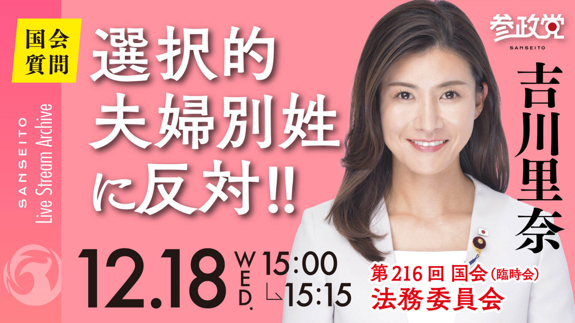 吉川りな【国会 12/18】 選択的夫婦別姓に反対!
