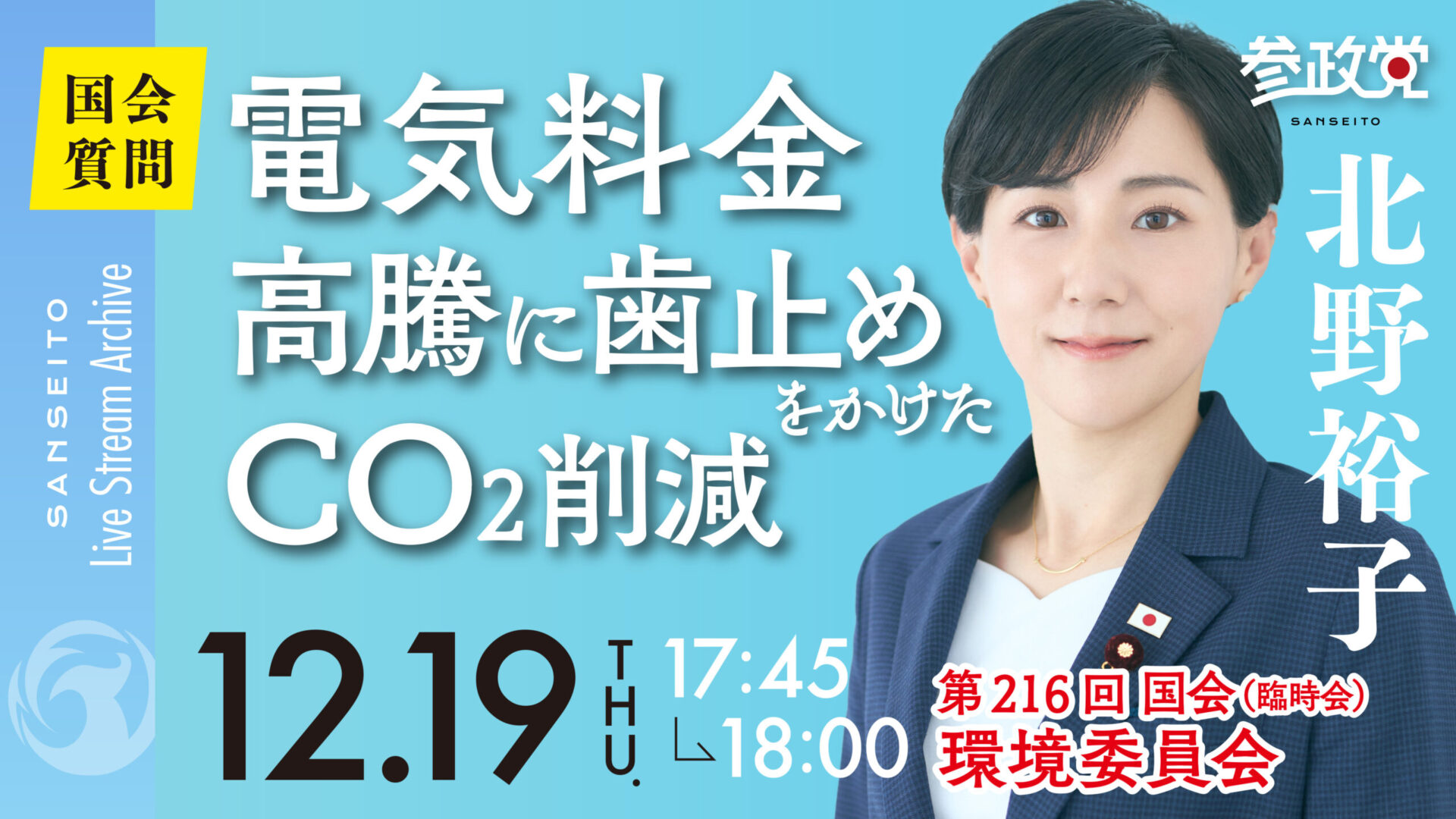 北野ゆうこ【国会12/19】電気料金高騰に歯止めをかけたCO2削減