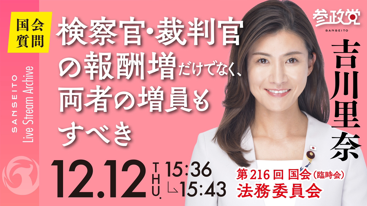 吉川りな【国会 12/12】 外国人犯罪増加へ裁判官・検察官の待遇改善と人員確保を