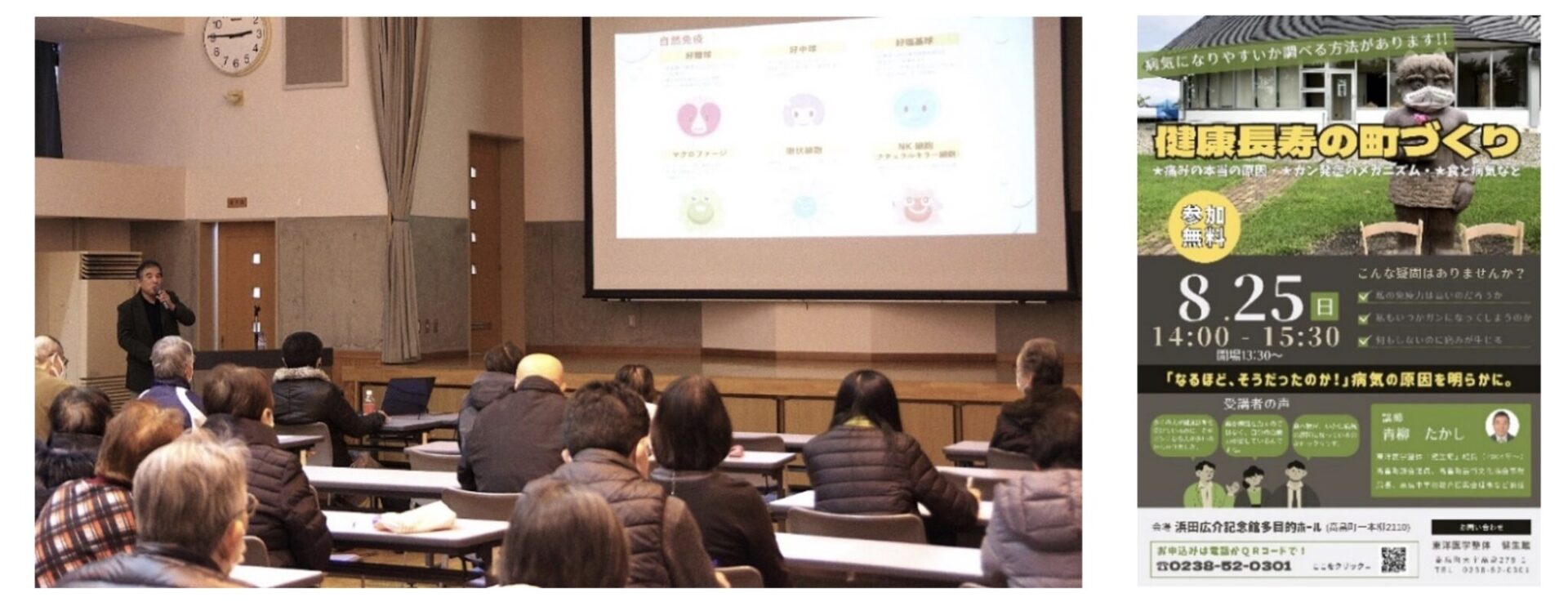 当町は、一人当たりの医療費(後期高齢者)が県内35市町村で第5位と高いほうで、もっと自分の免疫の力を知っていただくため、「健康長寿の町づくり」をスローガンに立候補したしだいです。